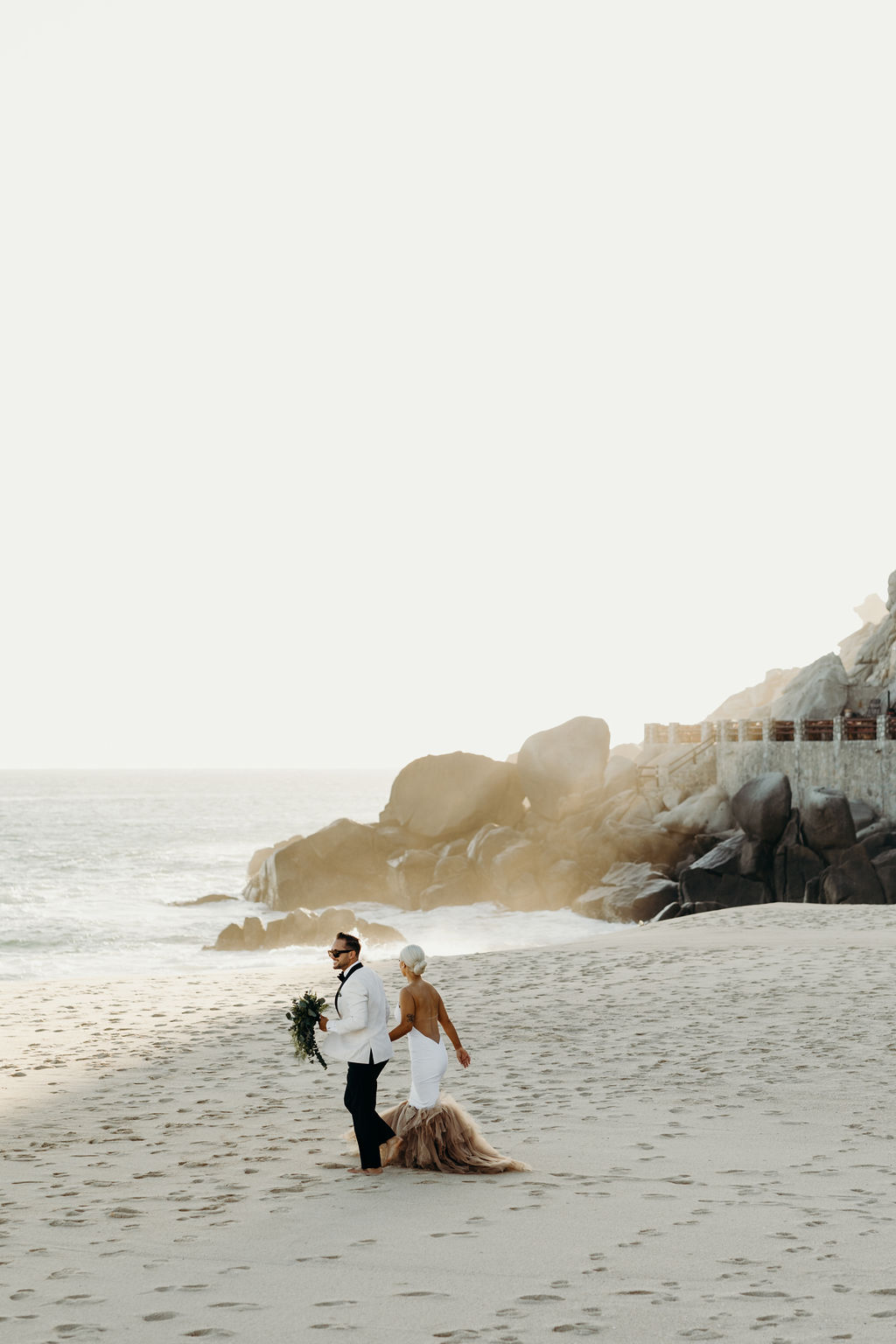 Speaking of breathtaking sights, let’s talk about having the honor of capturing Gillian and Drew’s micro wedding at the Waldorf Astoria Cabo. We knew that the stunning sunset was an essential element of this magical day, and we made sure to make the most of it.