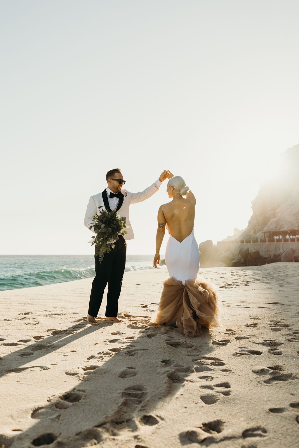 If you’re dreaming of a destination wedding that combines luxury and natural beauty, the Waldorf Astoria Los Cabos Pedregal is the place to be. Situated on the sparkling shores of Cabo San Lucas, this stunning resort offers breathtaking views of the ocean and the surrounding Cliff landscape. Gillian & Drew couldn’t have chosen a more picture-perfect location to say “I do”. With its elegant architecture, luxurious amenities, and warm hospitality, the Waldorf Astoria Los Cabos provided the perfect backdrop for their intimate elopement. From the moment they arrived, Gillian and Drew were treated like royalty, with every detail carefully curated to create an unforgettable experience.