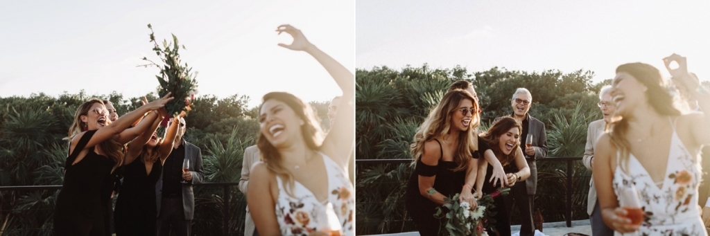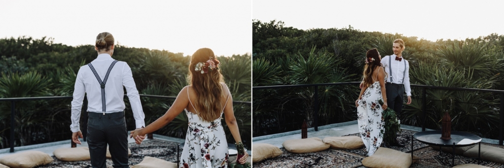 Karla’s first and main wish was to capture the easy but elegant style of their relationship. She, being a Designer and Soren, a Diver made a well-balanced couple to shoot their Tulum wedding portraits a little bit before sunset so we were able to do the ceremony at Habitas rooftop at sunset. Their families were already waiting for us to start and everything moved on a magnificent atmosphere made by shamanic music and wonderful food.