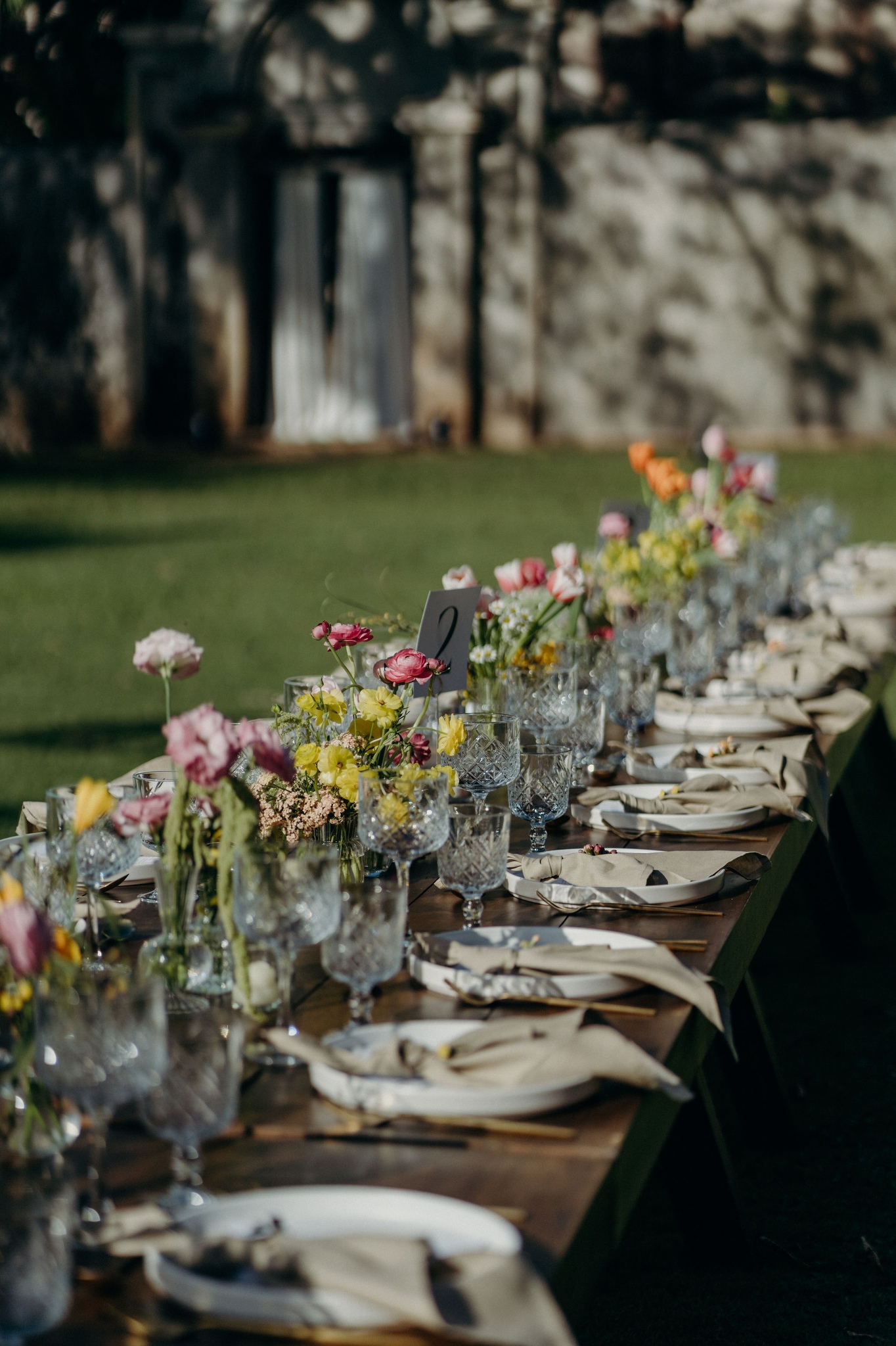 Just a short drive from the vibrant city of Merida, the Hacienda Sac Chich is a slice of luxury tucked away in the Yucatan jungle. With overnight accommodations for up to 21 guests, a great lawn, and a pool, this Merida wedding venue is a dream. The property’s old-world, yet minimal feel and lush greenery created a timeless ambiance that captured the essence of the celebration.